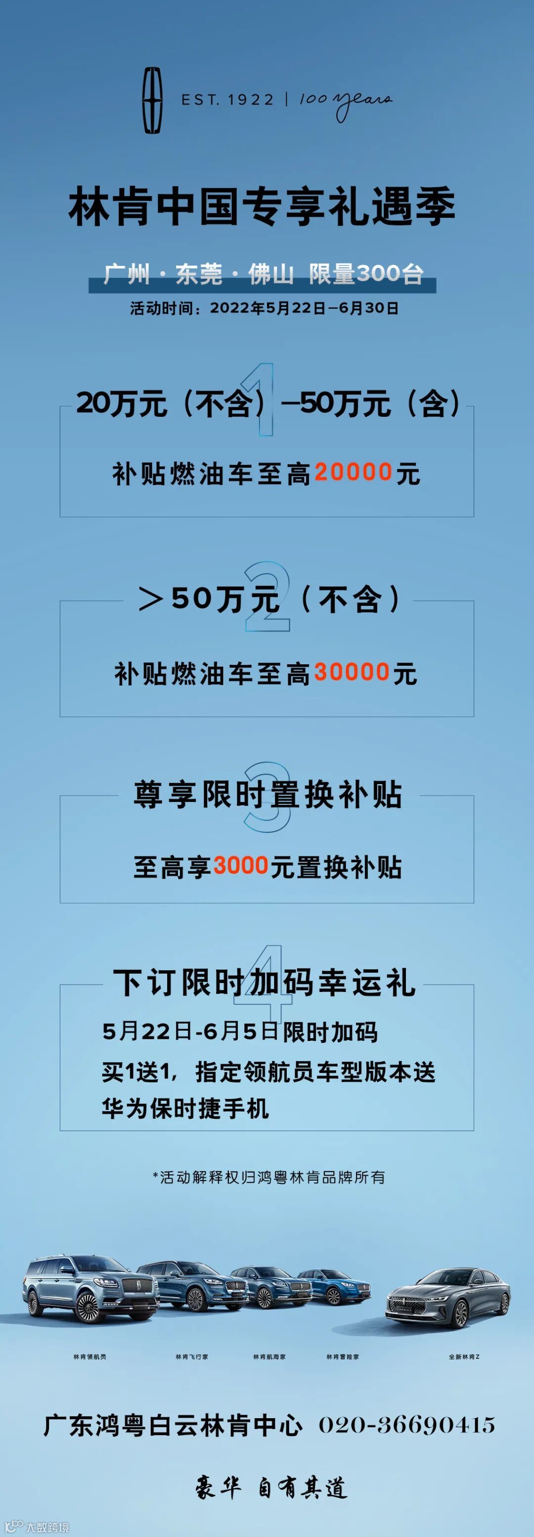 【白云鸿粤林肯】林肯中国专享礼遇季购车至高补贴3万元 广东鸿粤林肯用户中心