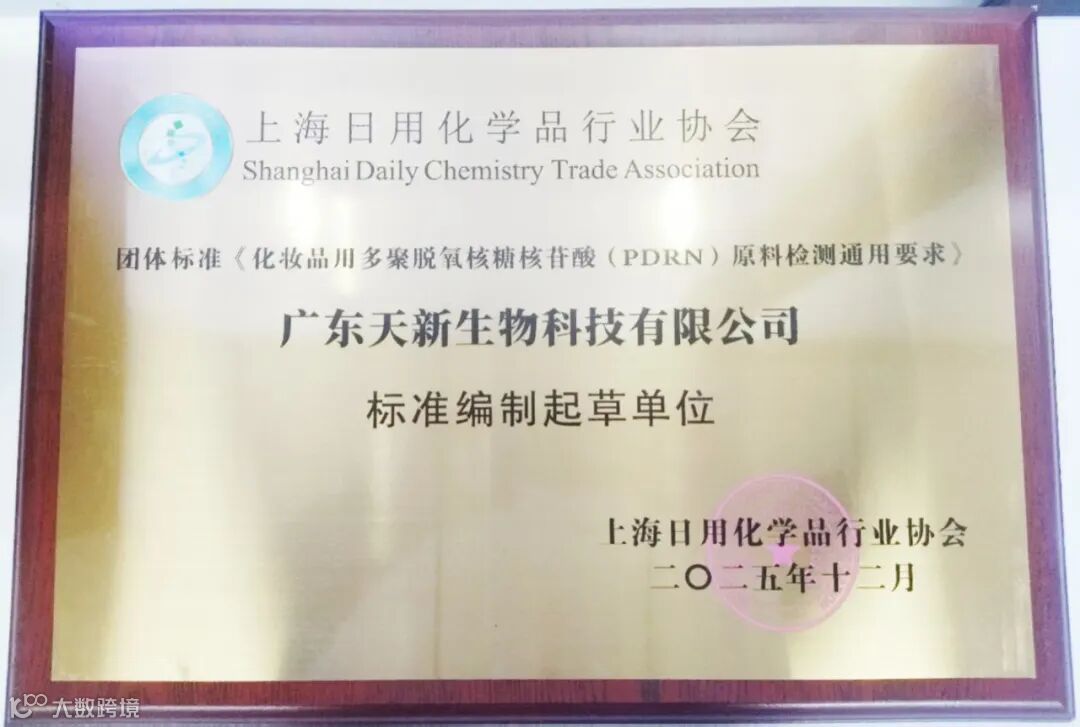 近日,上海日用化学品行业协会正式发布团体标准《化妆品用多聚脱氧核糖核苷酸(PDRN)原料检测通用要求》,标志着我国化妆品原料质量管理迈上新台阶。广东天新生物科技有限公司作为天新生物集团旗下重要成员企业,以标准编制起草单位的身份深度参与制定工作,为行业规范化发展贡献了专业力量。