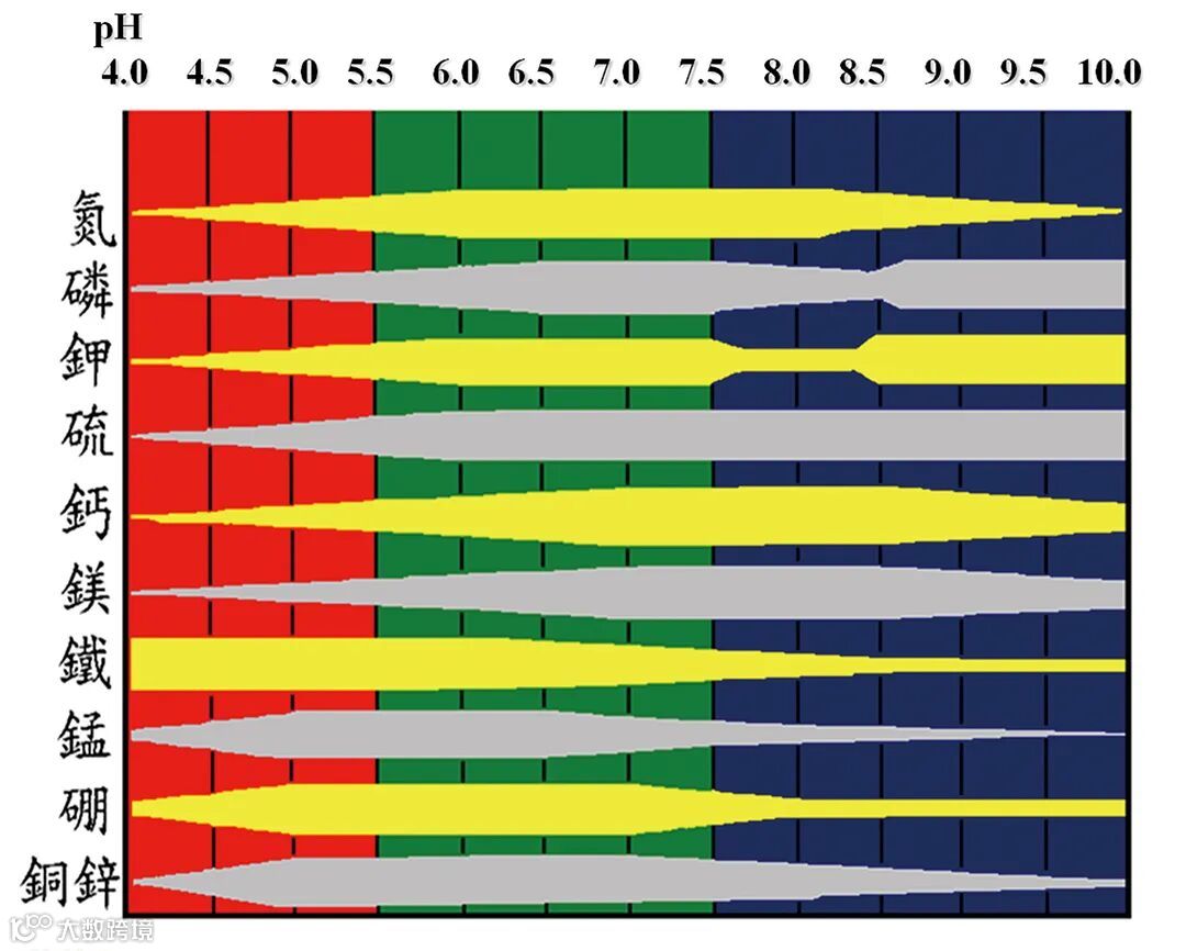 各元素在土壤不同PH值下的有效性