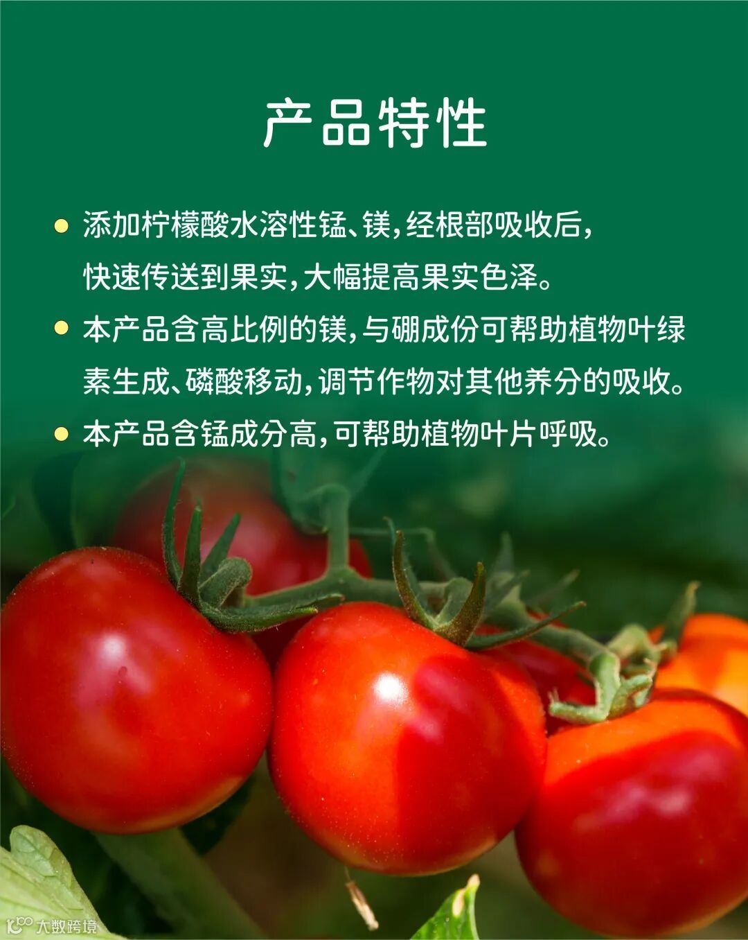 本产品建议于花果期,由叶面喷施,以促进着色。