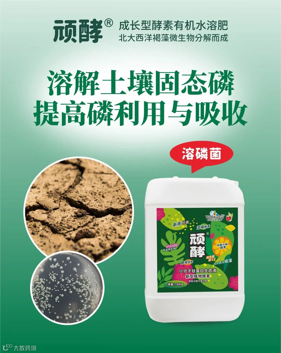 特有的溶磷菌,可分解土壤中固化的磷,使土壤中磷的激活与释放,提高植物对磷的利用率。