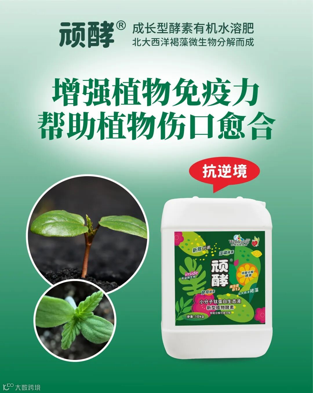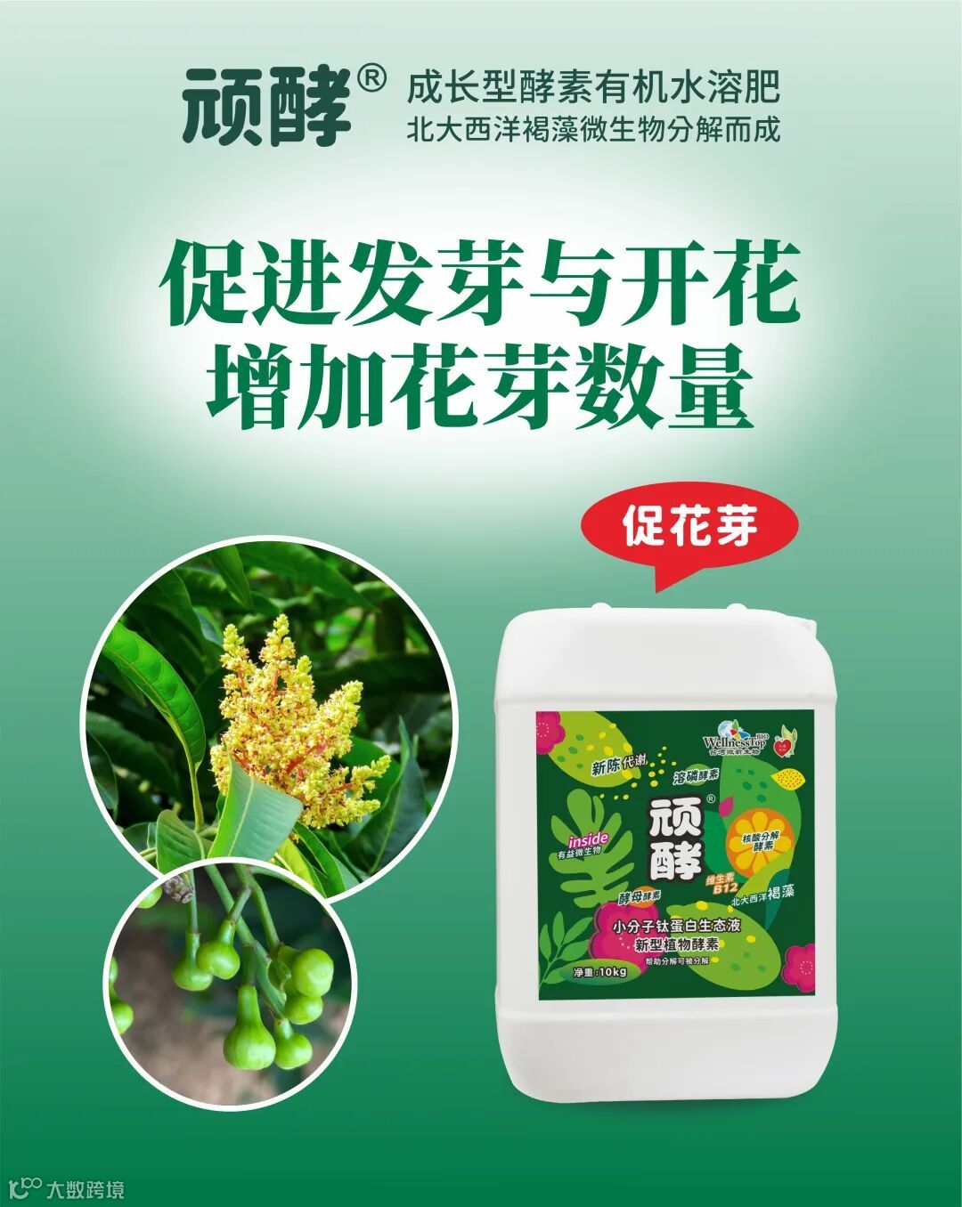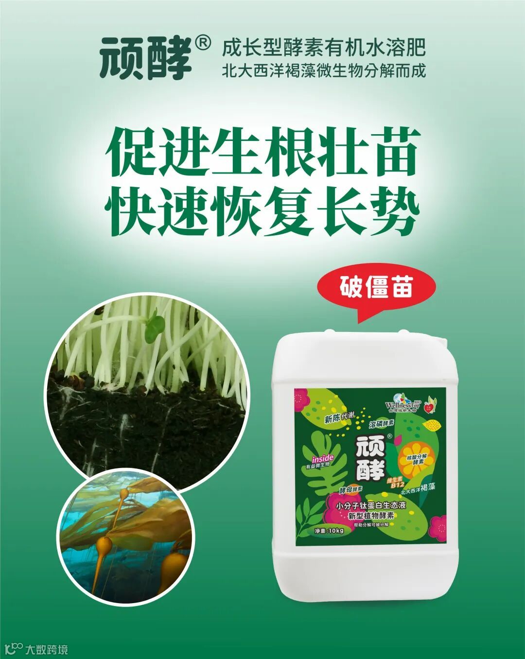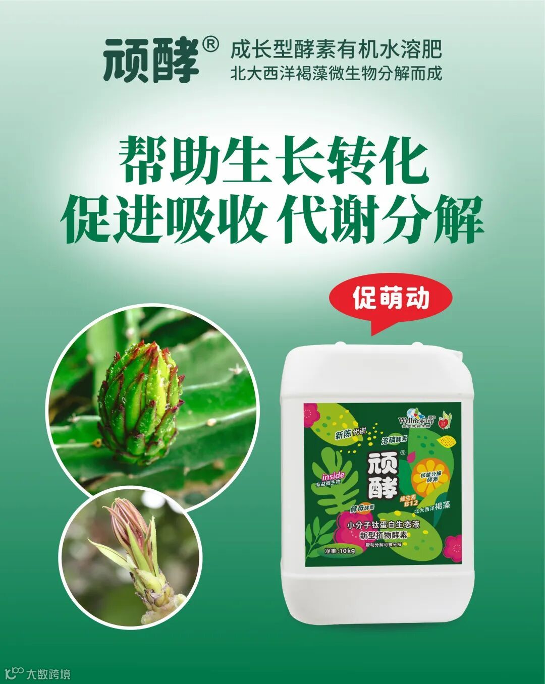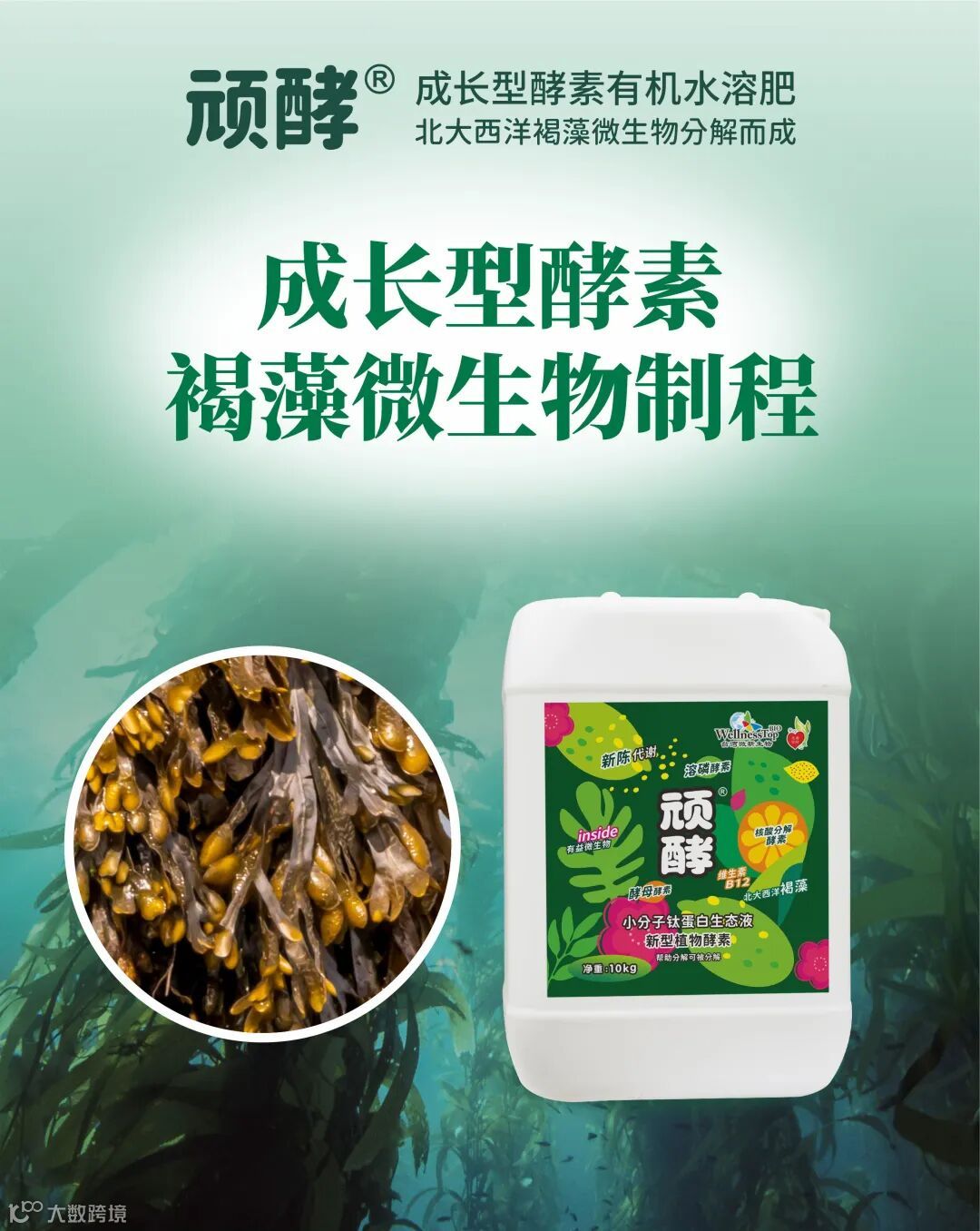 主要成分:天然海藻精华、核酸分解酵素、溶磷酵素、酵母酵素、新型植物能量催化剂;全氮8.3%、硝酸态氮7.6%;氨基酸螯合镁8.9%