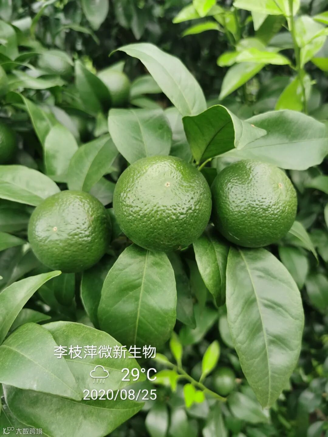 本文图片和视频介绍的是沃柑的情况。目前沃柑果子长得非常大个,均匀。经2020年8月25日实测,果径普遍在55-60毫米之间。果园树势旺盛,修剪得当。叶片油亮,浓绿。秋梢长势也非常好,明年基本不会出现大小年。