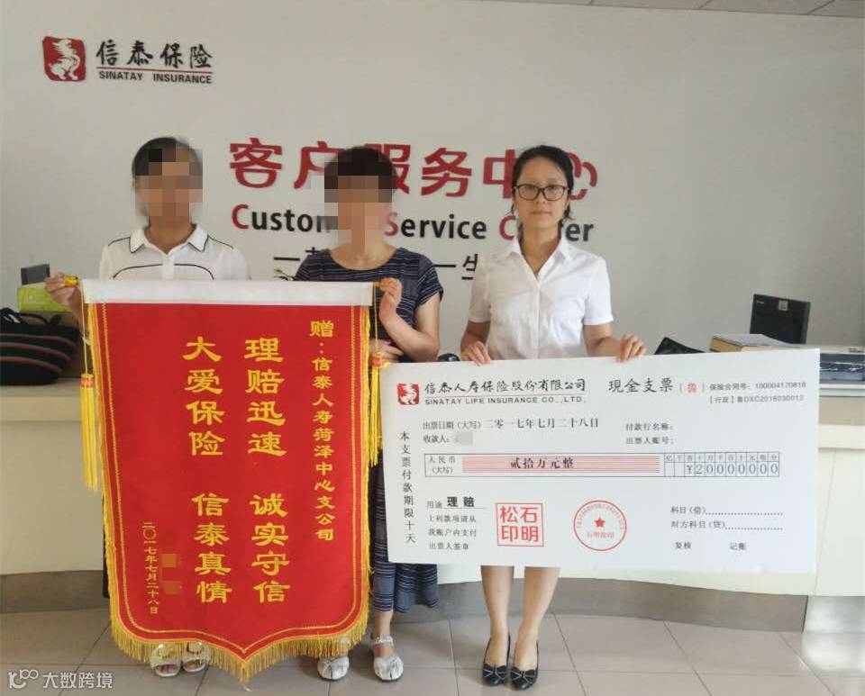 2017年7月22日,张女士通过信泰保险全国客服热线95365报案申请理赔。信泰保险菏泽中心支公司接到报案后,迅速派出理赔人员与张女士取得联系。理赔人员了解其详细情况后,帮助准备理赔材料,24小时待机随时解答客户的疑惑。7月26日,理赔材料收集齐全后,工作人员当天录入系统完成审核。第二天,20万元理赔款及时打到张女士的账户。理赔之迅速,服务之真诚,充分彰显信泰保险“专业、高效、贴心、便捷” 的服务理念。