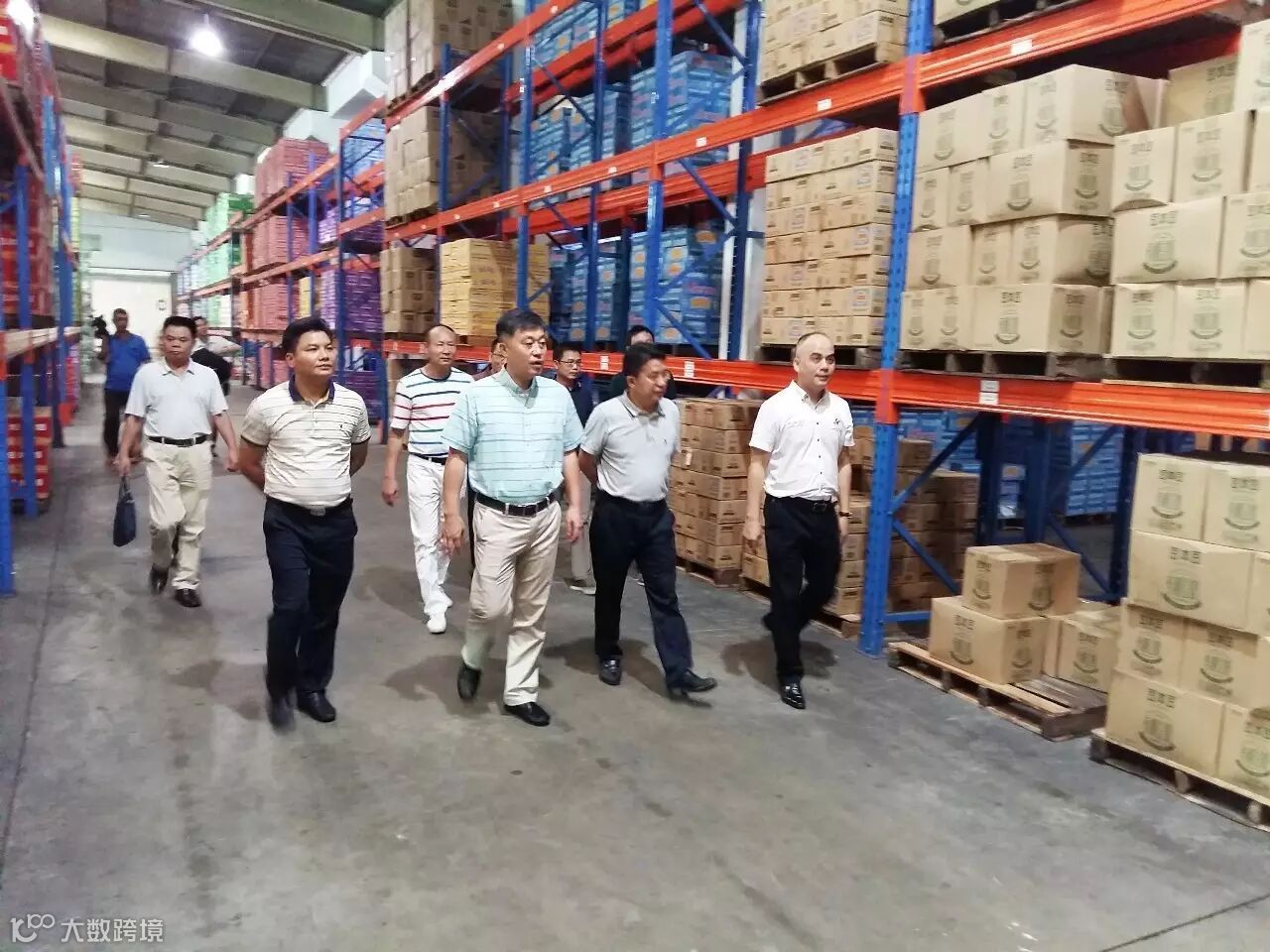 我司各相关部门负责人陪同平南县委书记韦庆强一行参观物流仓库