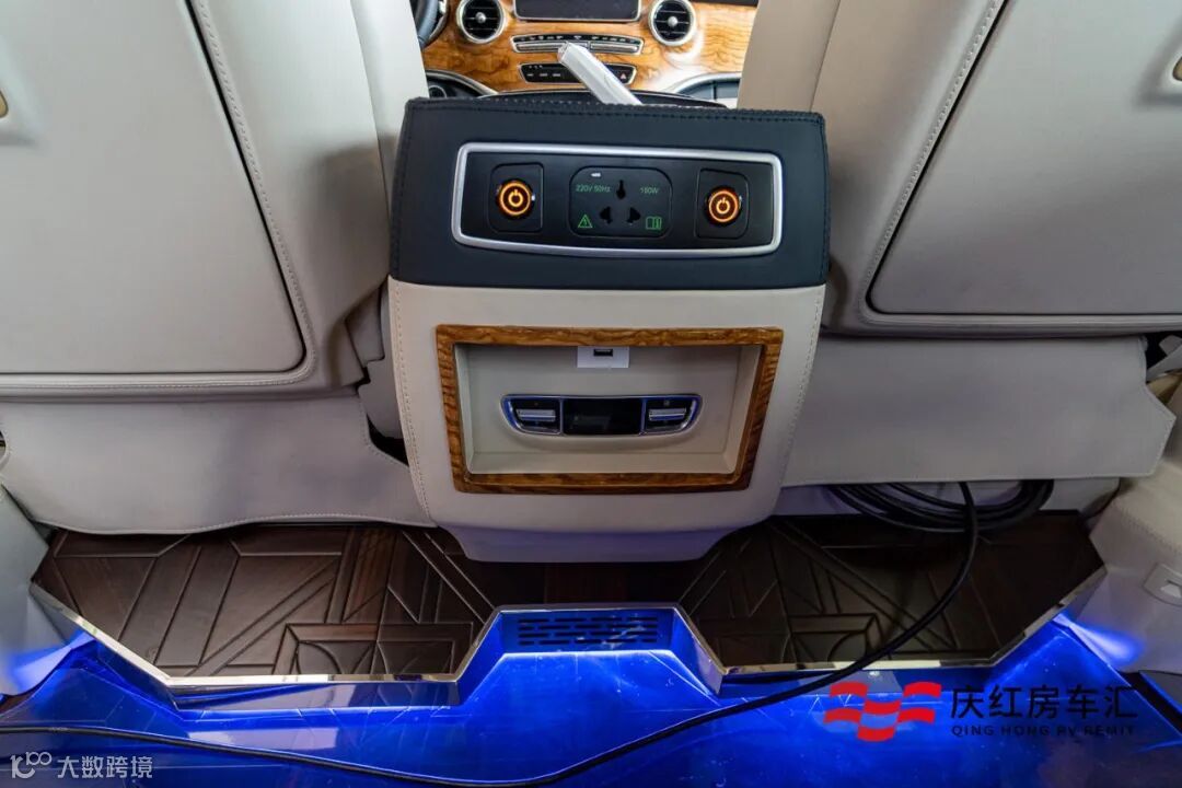 驾驶舱也采用了高级岑木装饰整个中控台,真皮与岑木拼接的多功能方向盘,与舱内米白色的真皮搭配恰到好处,尊贵高雅的气息弥漫。中央扶手处暗藏车载冰箱,旅途中能随时取出一杯冷饮来喝!