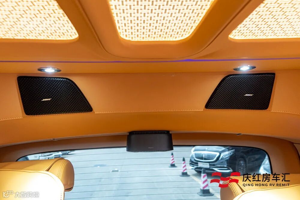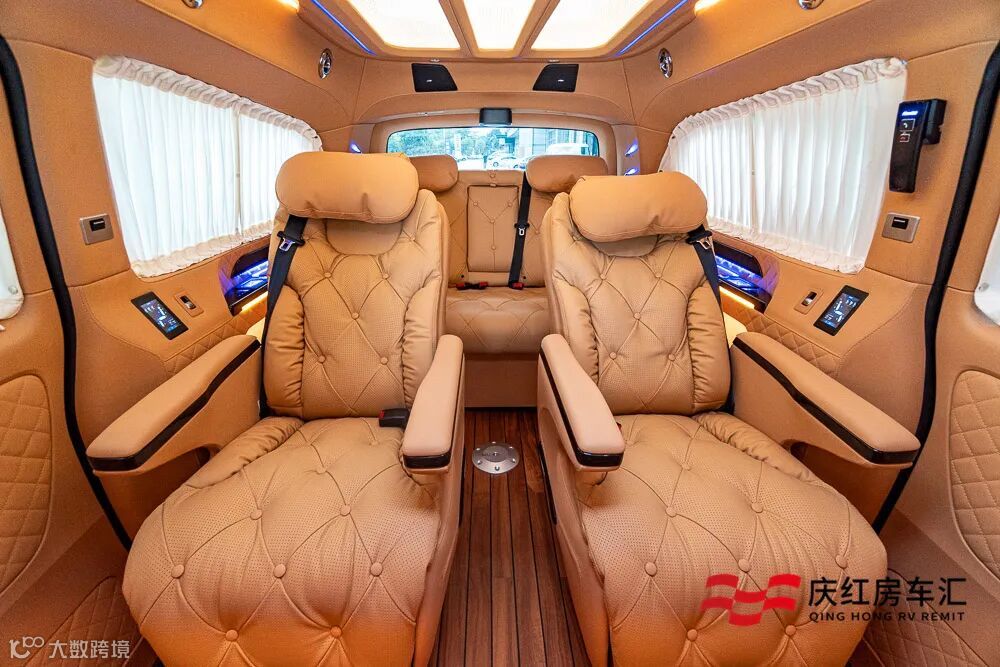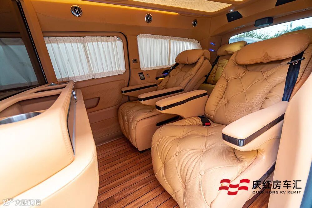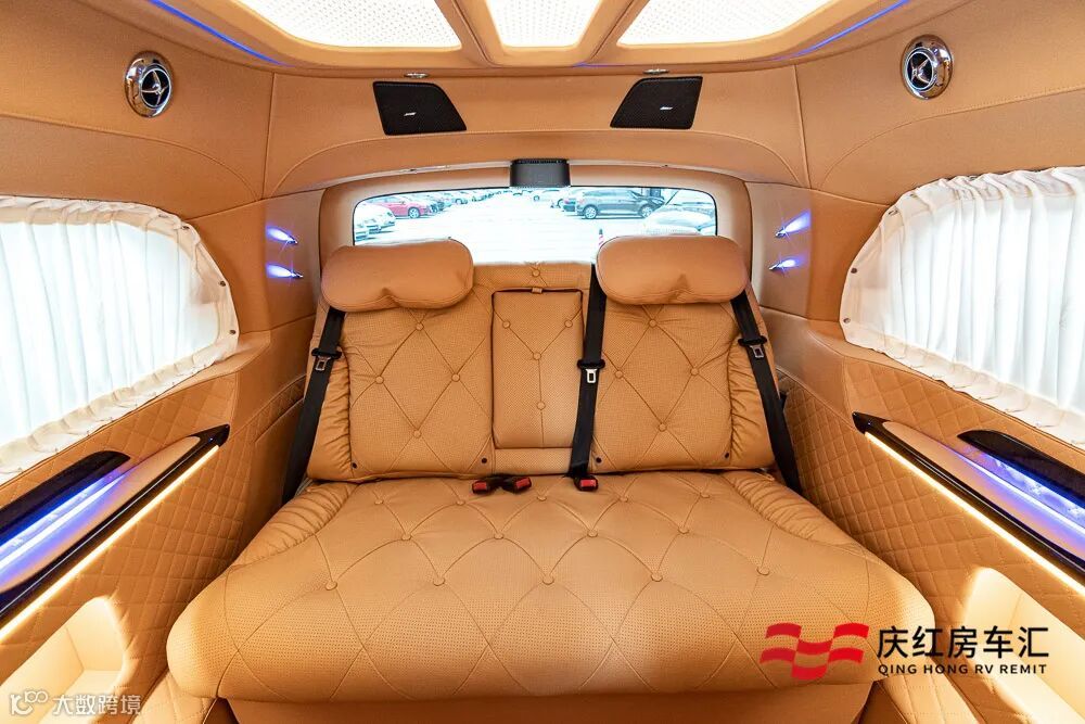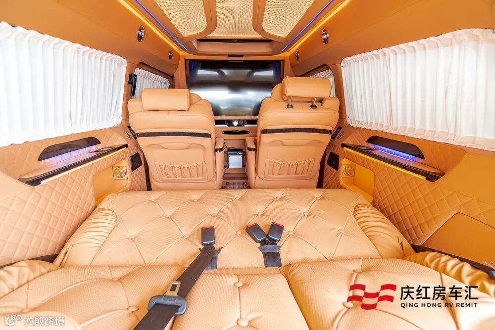中排老板座椅一看就知道不简单,6向电动调节+按摩+电动加热+脚托,后三排是可电动平躺成大床的沙发座椅,宽大厚实,舒适性很好,出门远游也不在怕的!