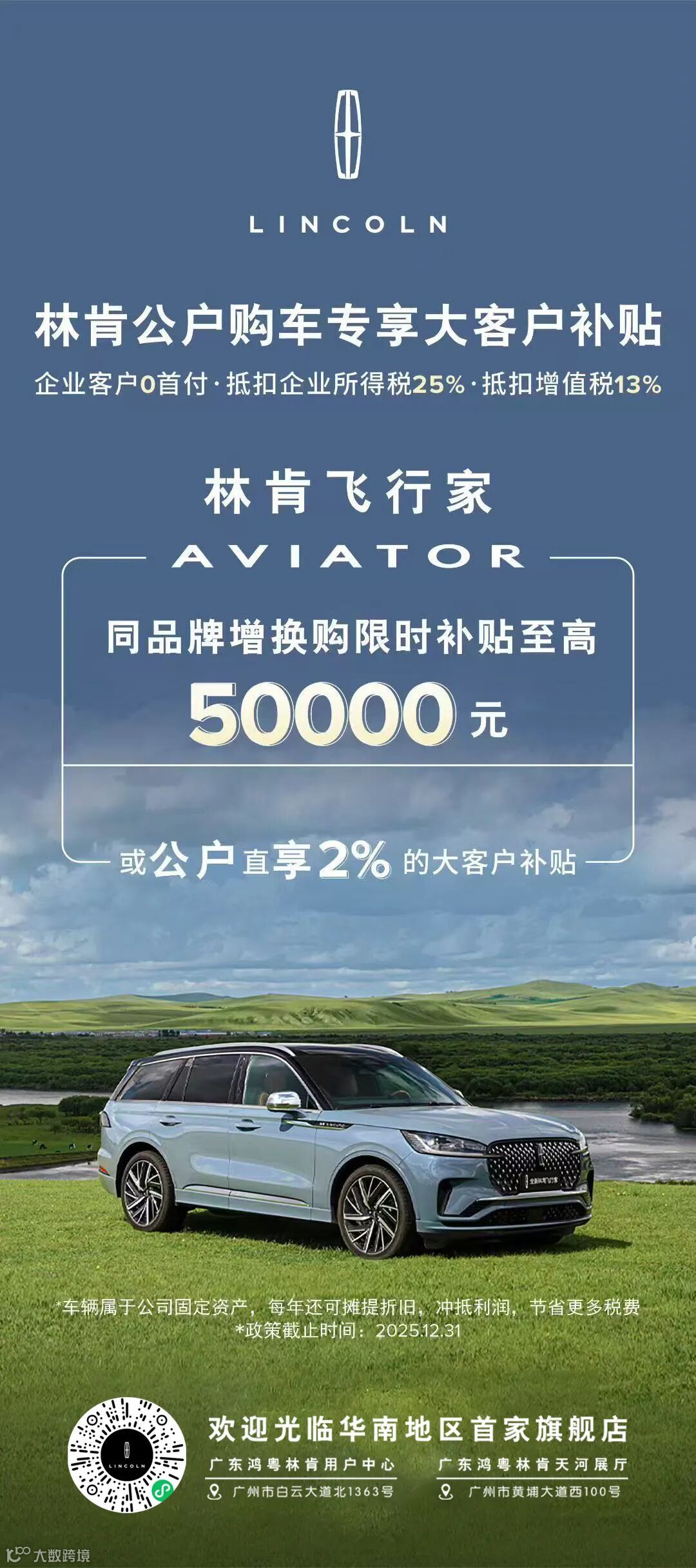 企业购车专享大客户补贴 购林肯飞行家至高抵稅40%