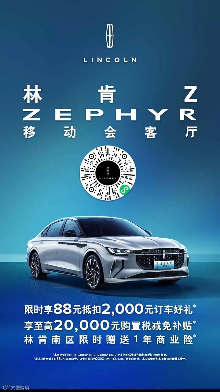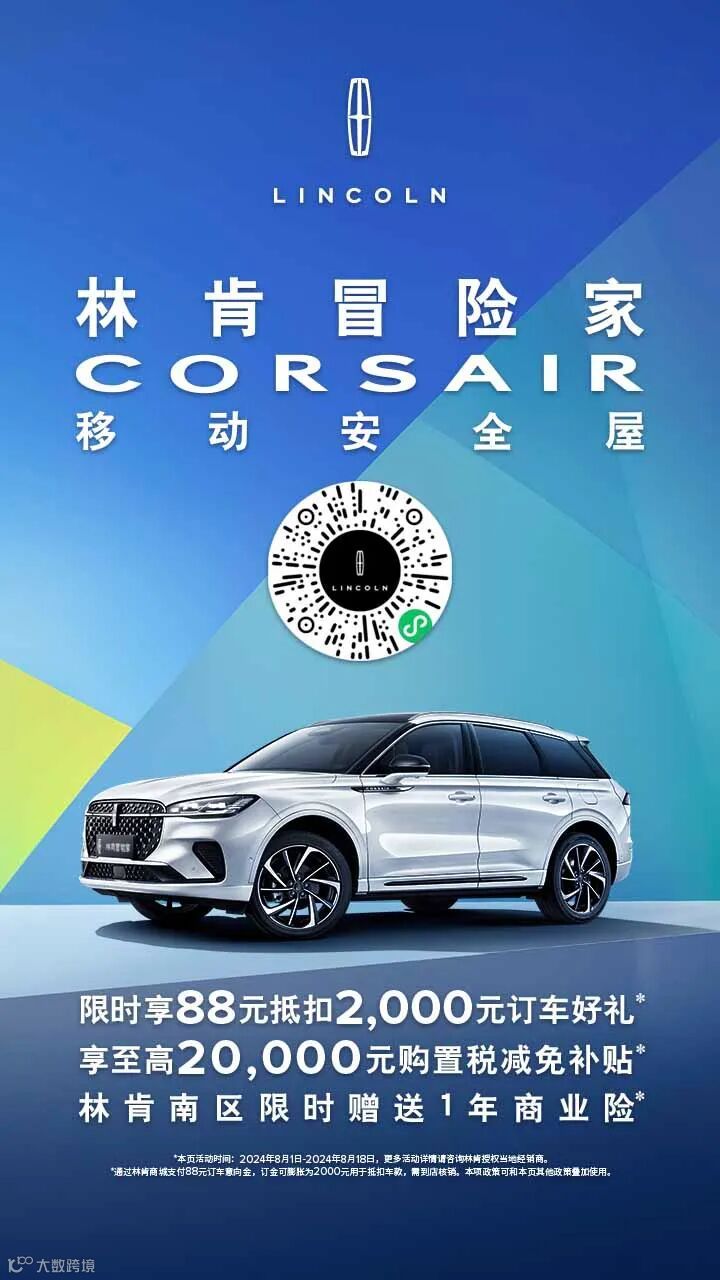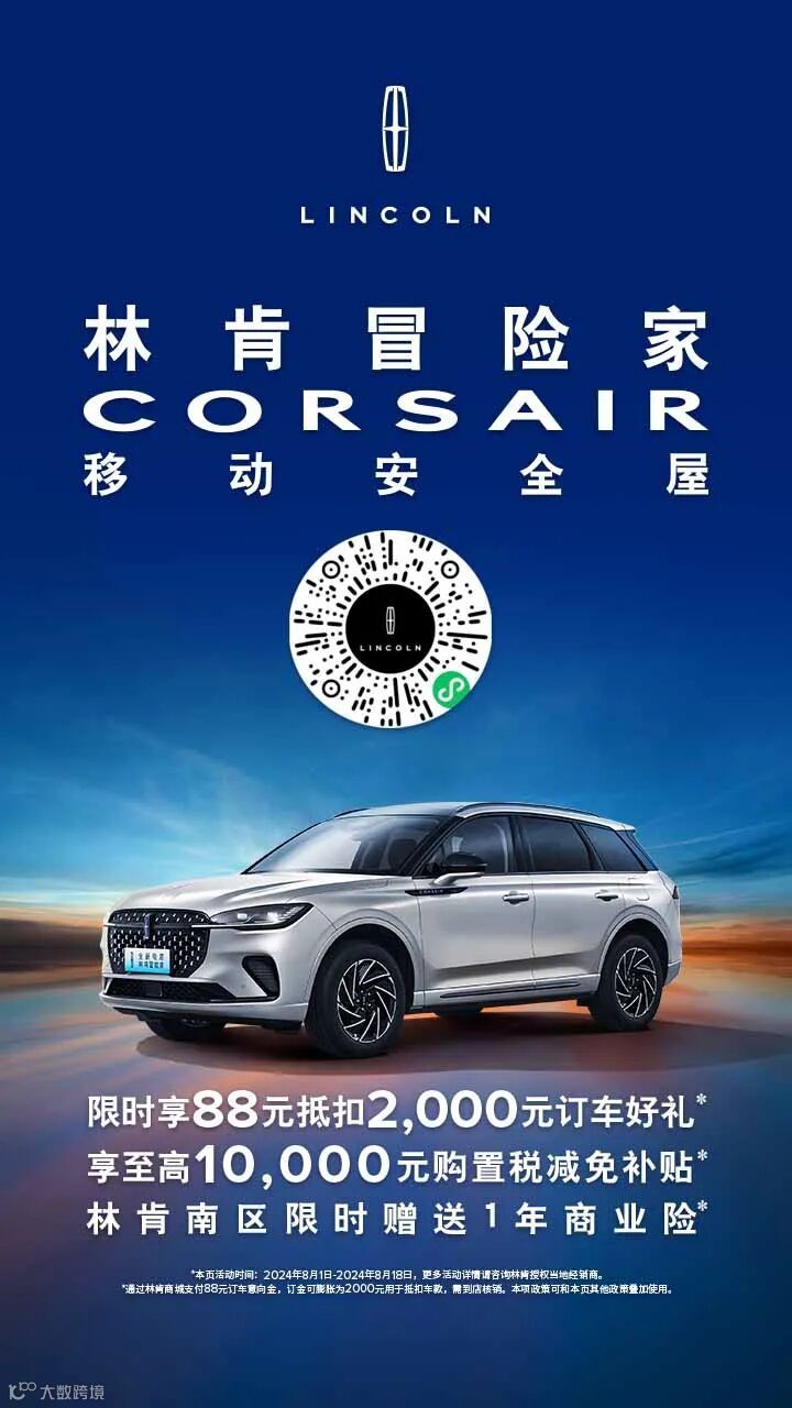 林肯全系车型 限时享88元抵扣2000元订车好礼