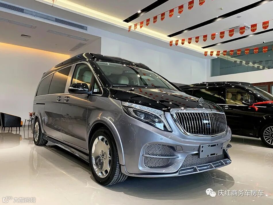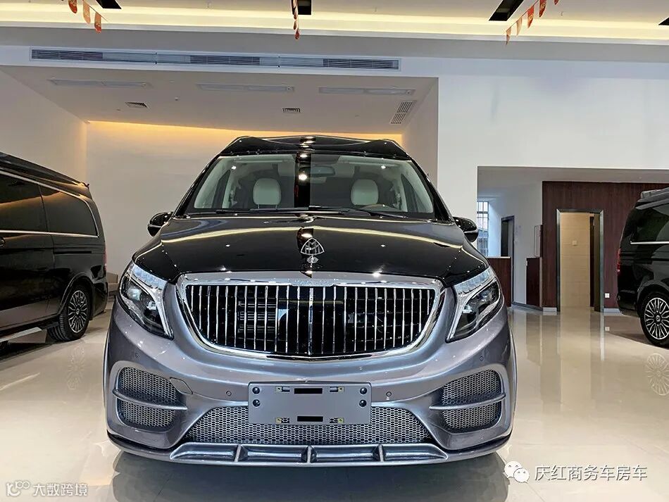 还有一些定制来得比较特别,比如下面这款双拼色迈巴赫款奔驰V级定制商务车,黑银双色外观,搭配迈巴赫风格前脸,大面积的镂空设计,加上迈巴赫立标,整体非常霸气!开着出去回头率也是超级高!