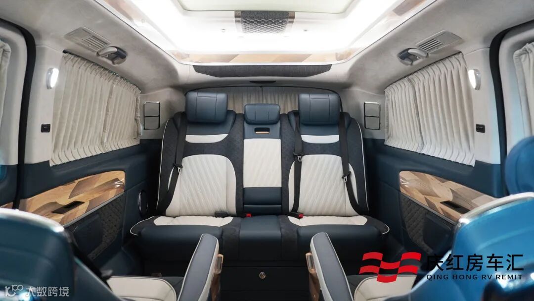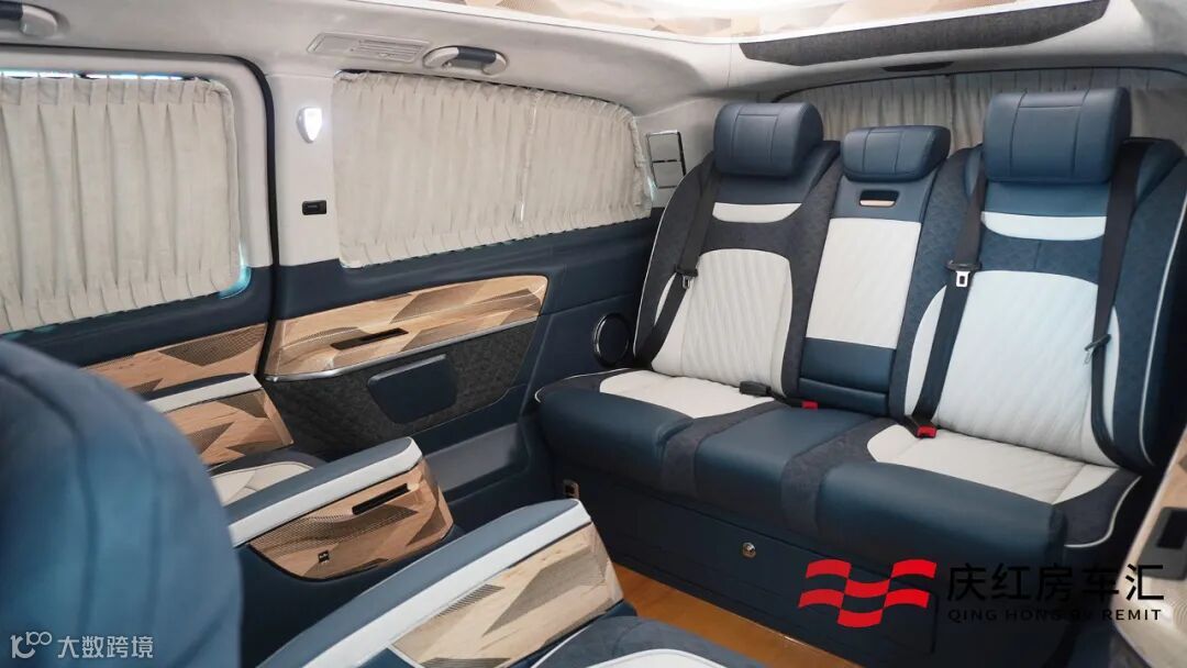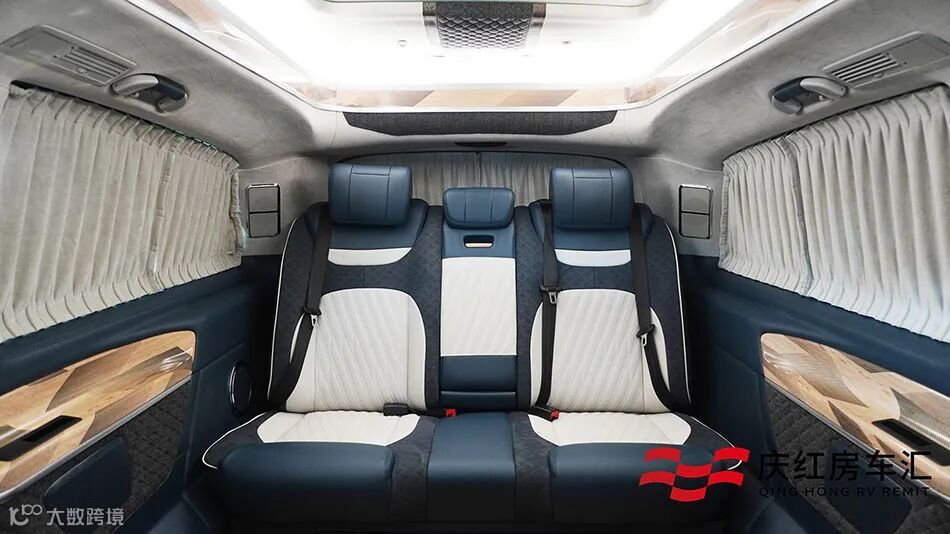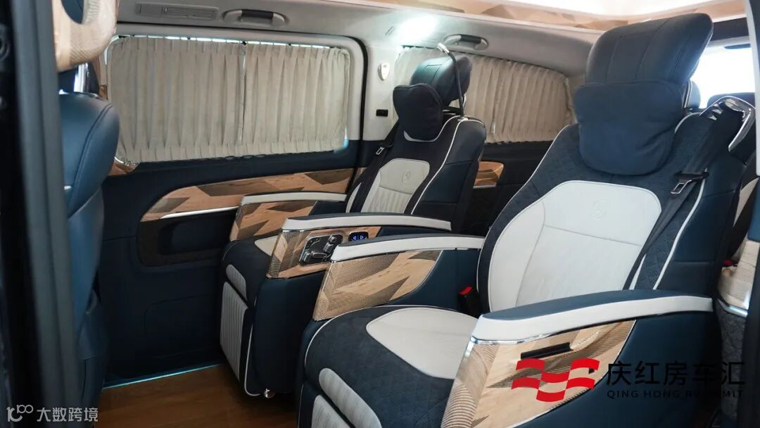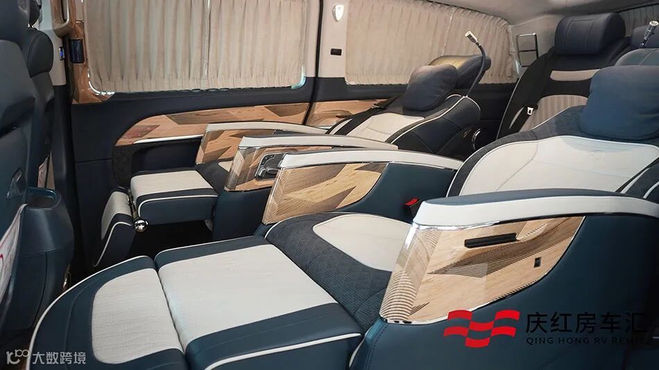 奔驰V级内饰定制可一点也不马虎,高档柚木铺设地板,麂皮绒包覆顶棚,全景式滑动天窗带电动遮阳帘,以及后舱隐私窗帘设计等,打造内部绝美氛围,豪华高级。整车经过隔音降噪处理,坐在车内就跟飞机头等舱一般!