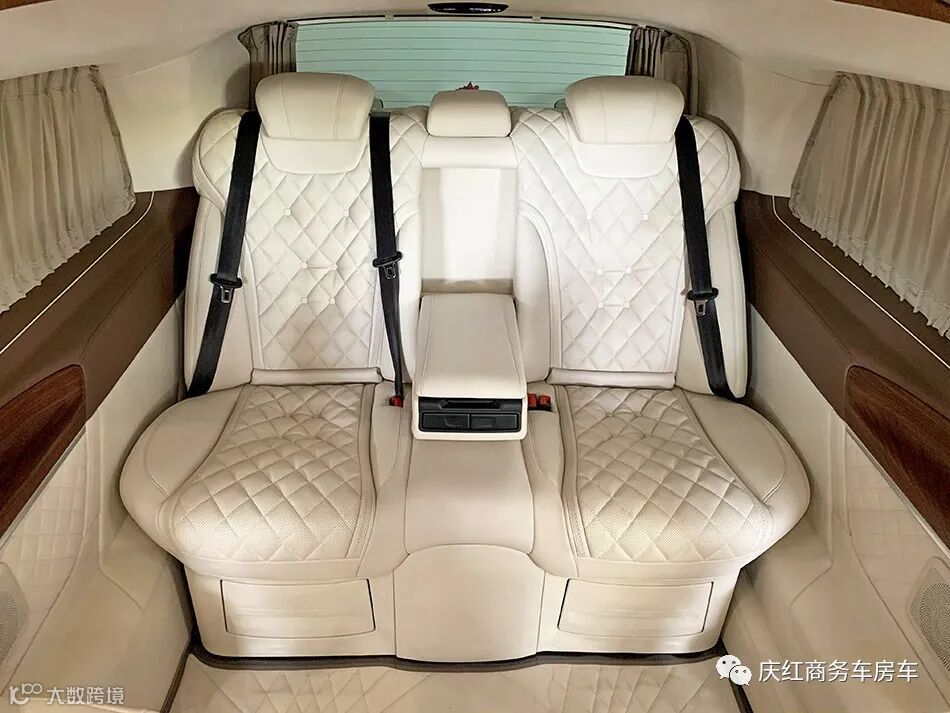 纳加拉丝皮缝制正副驾驶座椅,极致舒适,具有前后、靠背、高低以及腰部支撑的功能。座椅之间还搭载了车载冰箱,夏天来瓶冰可乐,超爽!
