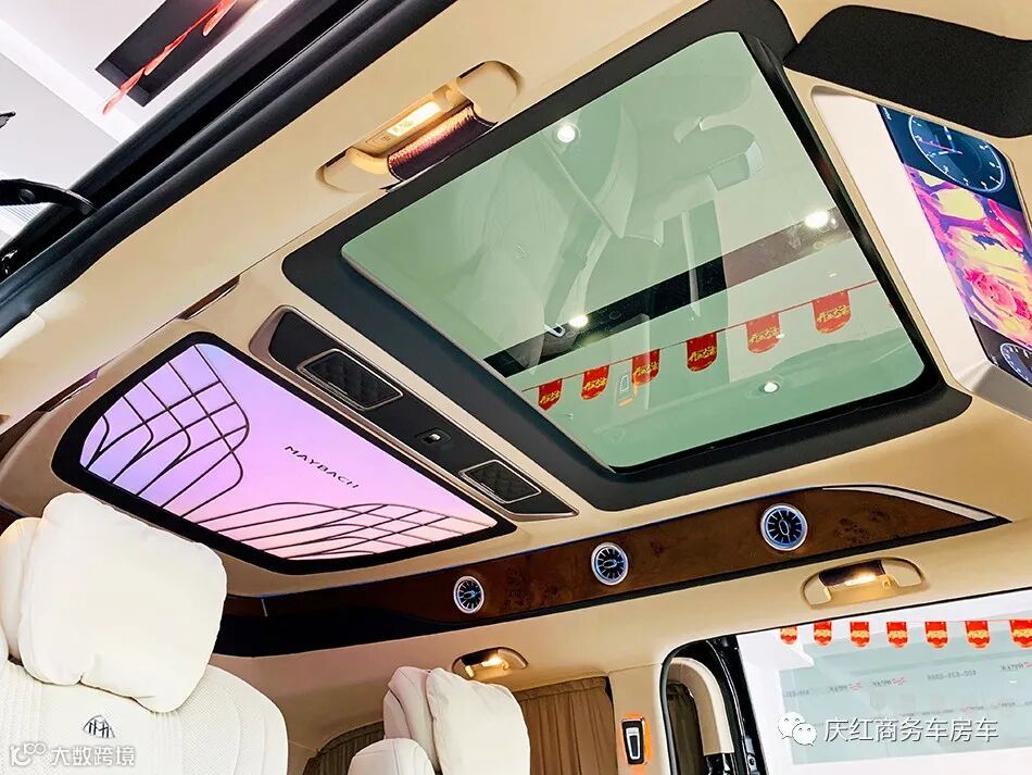 迈巴赫电镀镂空顶灯,3色可调节,衬托出奔驰V级定制商务车的奢华。