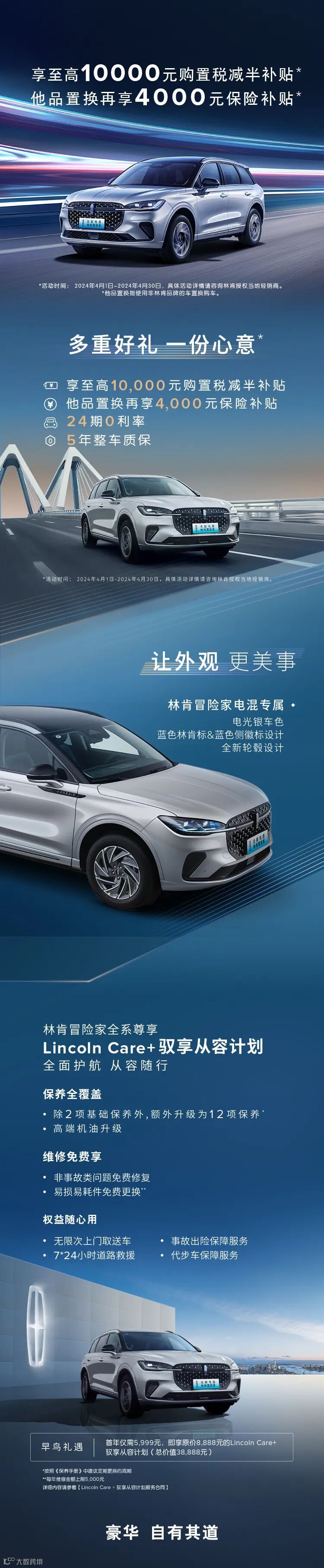 全新电混林肯冒险家 享至高10000元购置税减半补贴