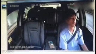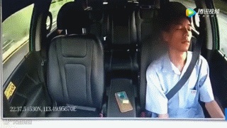 等汽车碰撞到道路设施司机才惊醒,随后刹车。万幸此时路上车辆较少,没有酿成大祸。