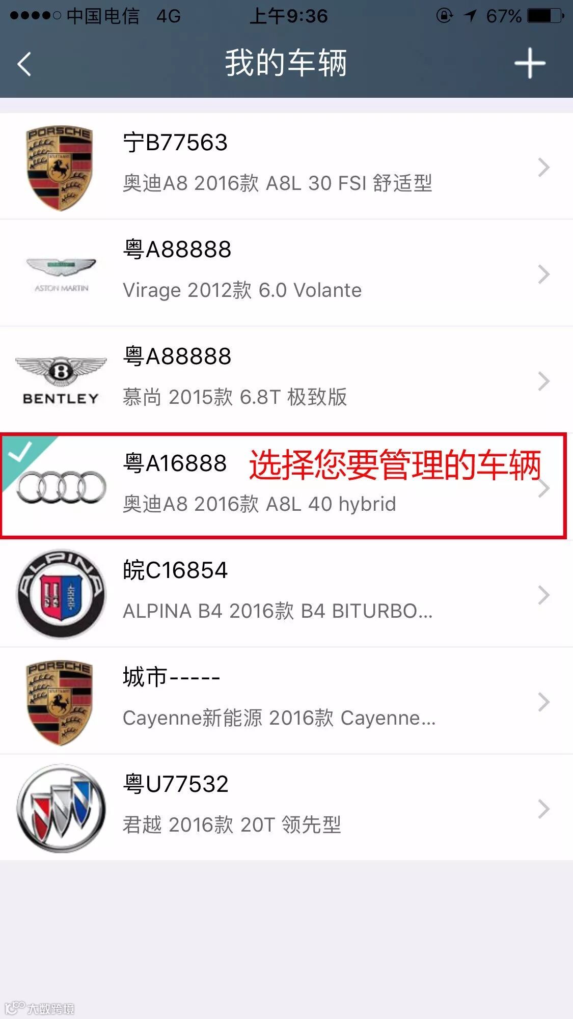 然后选择需要管理的车辆