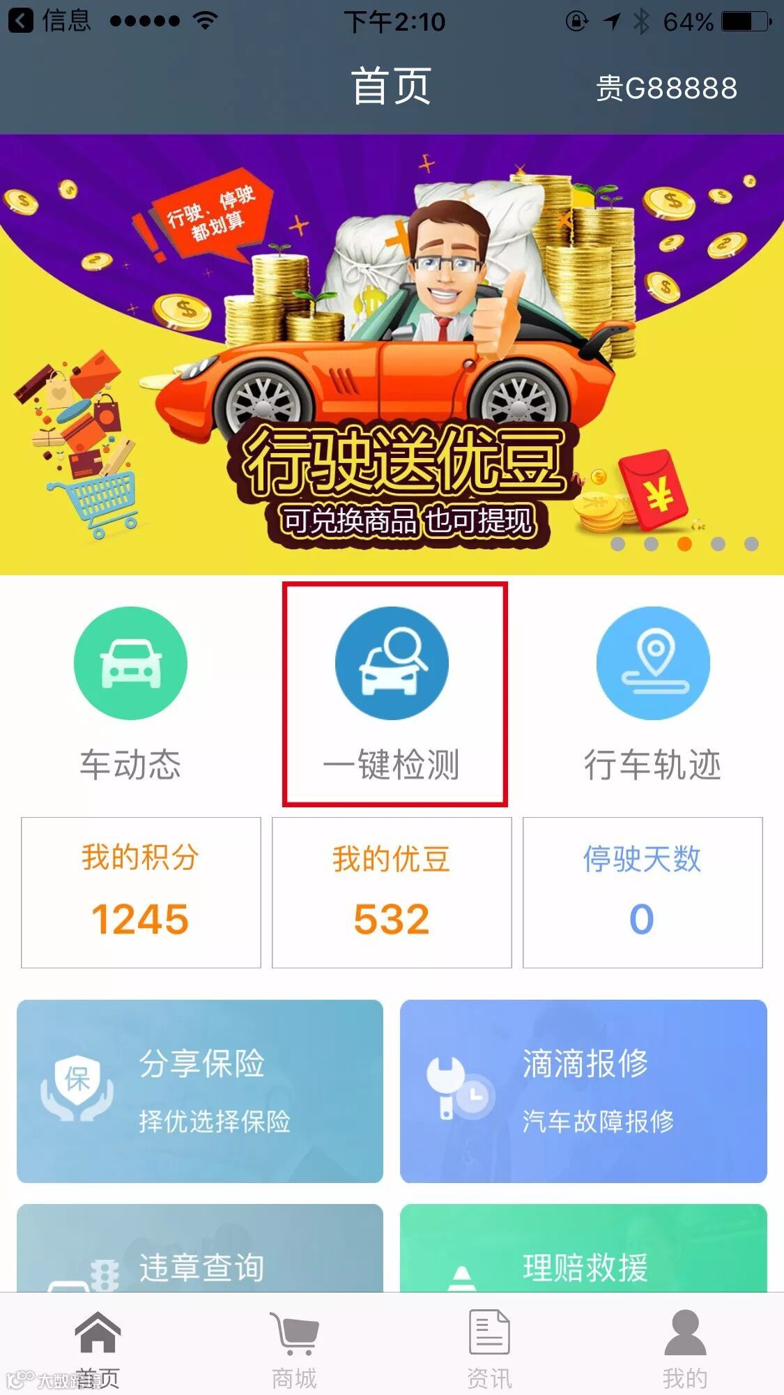 新功能三:一键检测汽车,随时掌握汽车动态