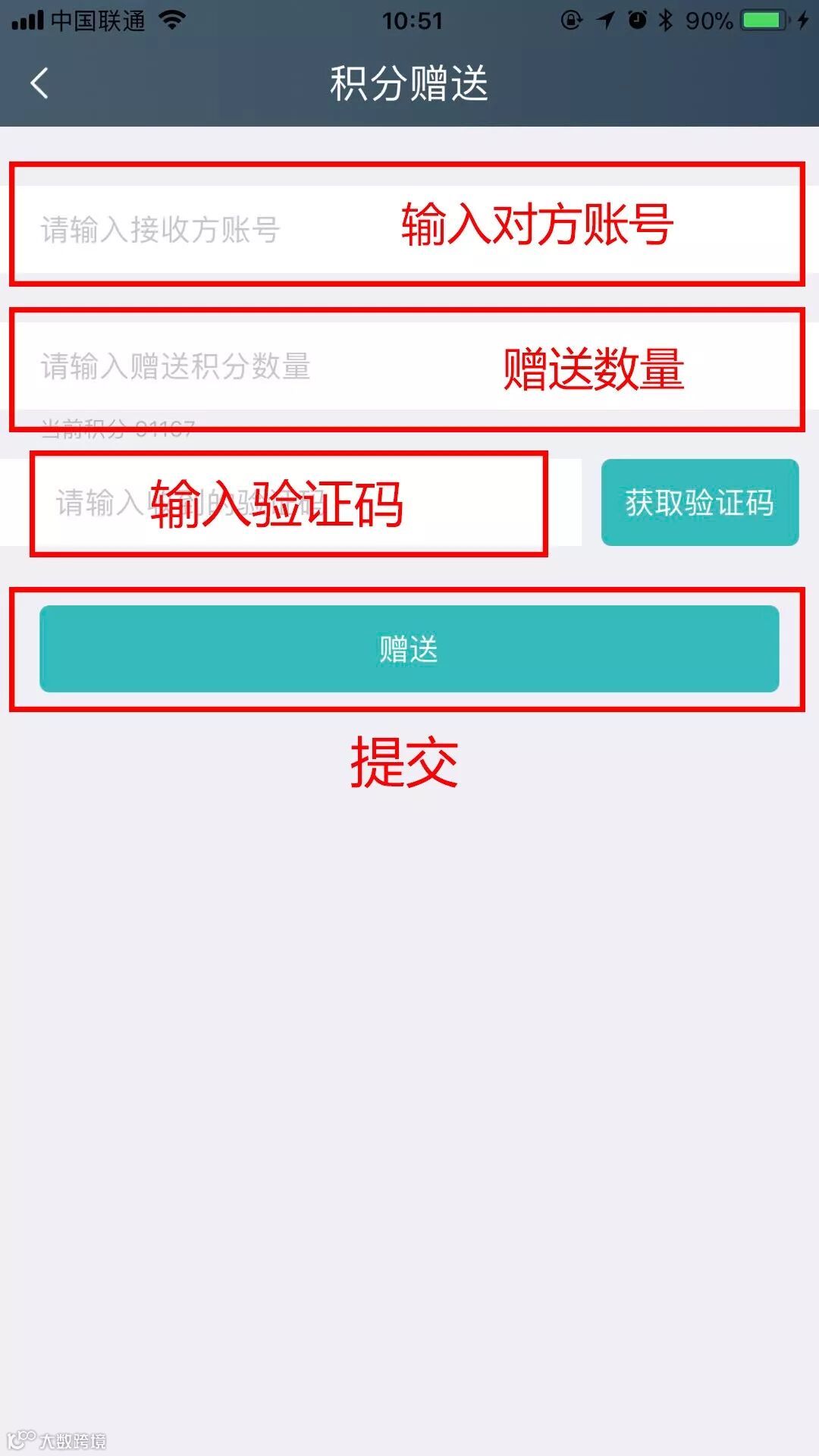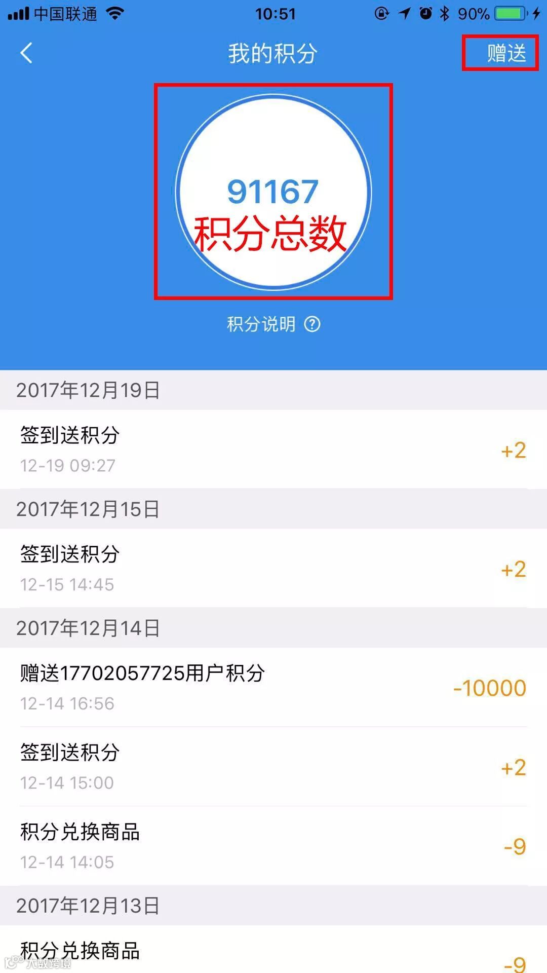 然后进入积分赠送界面
