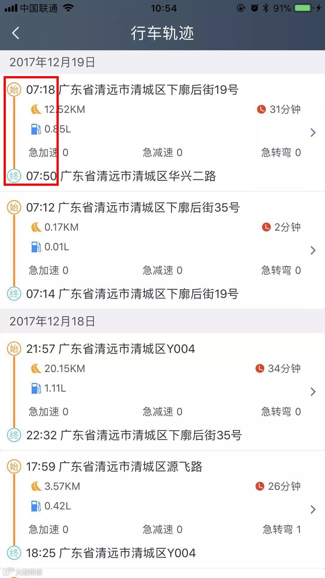 行车轨迹增加了汽车从行驶到结束的时间显示