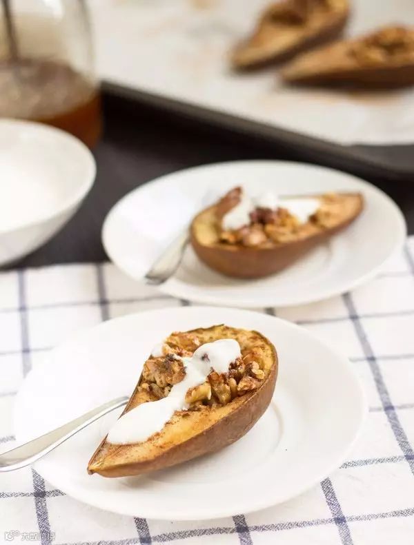 核桃加蜂蜜本身就有通便、润喉的功效,但不可多吃,吃多了会使血脂升高,而和梨一起吃,则更有利于消痰降火、补血润肺。