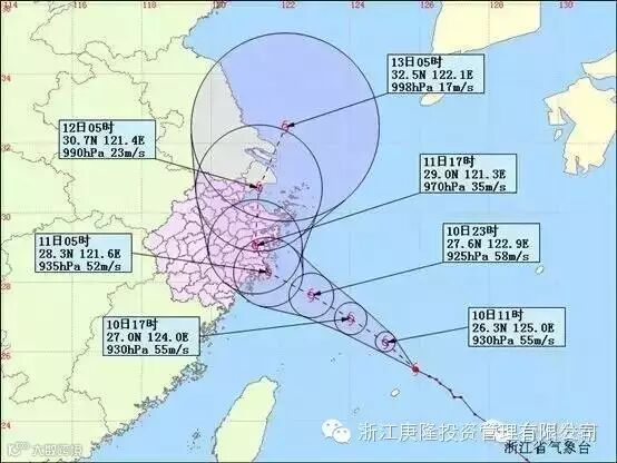 第9号台风“灿鸿”(超强台风)1今天10时中心位于台州东南方向约480公里的东海海面上,即北纬25.9度、东经125.2度,中心附近最大风力16级(52米/秒),中心最低气压935百帕,七级风圈半径450公里。预计“灿鸿”将以每小时20公里左右的速度向西北方向移动,然后逐渐向浙江沿海靠近,最大可能于明天早晨到上午在玉环到象山一带沿海登陆,登陆时强度可达强台风级到超强台风级。