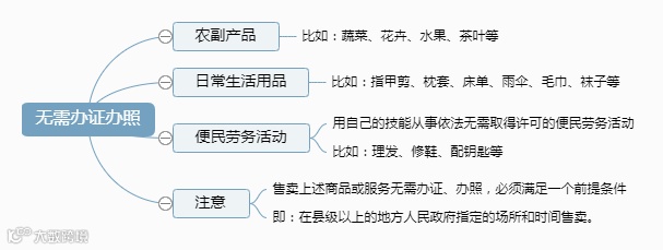 这样看来,是不是个人摆地摊,都需要办理营业执照呢?也不是,《办法》也规定了一些可以不用办证办照的情形。根据规定,个人摆地摊售卖下面这些商品或服务,无需办证办照: