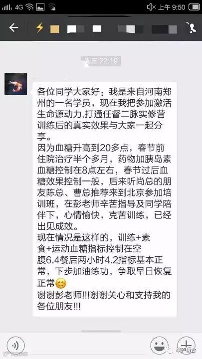 第四天,我就感觉到周天通了,就像作家同学说的,老师边讲我们边做,这样是最好的,第四天我就是老师边讲,我就按照老师说的一个一个穴位去做,真的就通了。