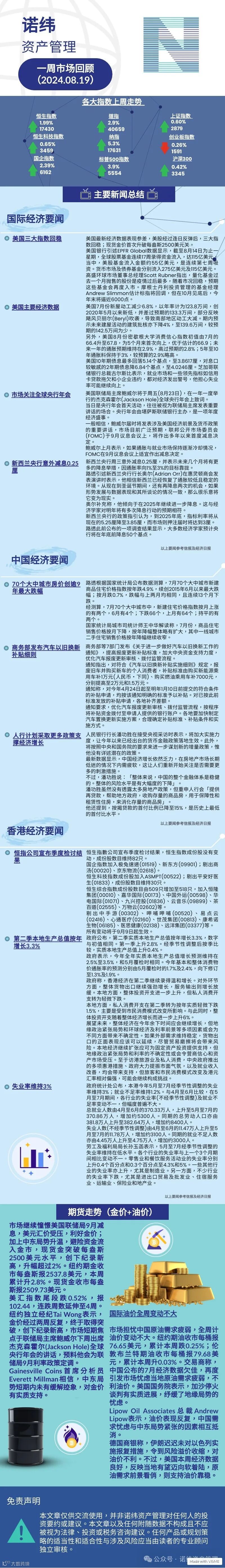 诺纬一周市场回顾 (2024.08.19) 诺纬资产管理
