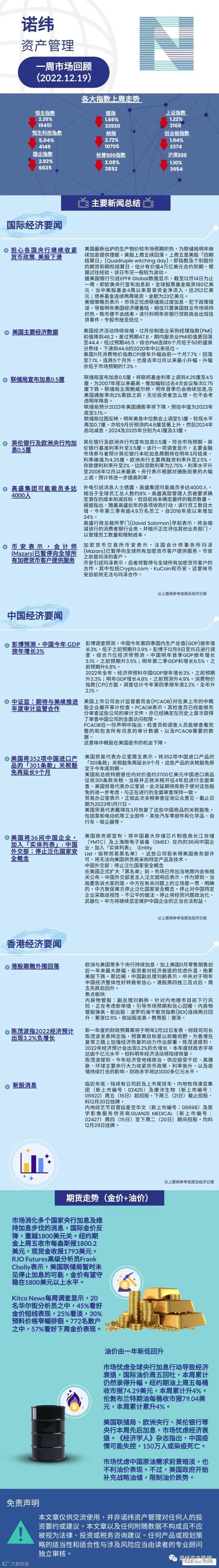 诺纬一周市场回顾(2022.12.19) 诺纬资产管理
