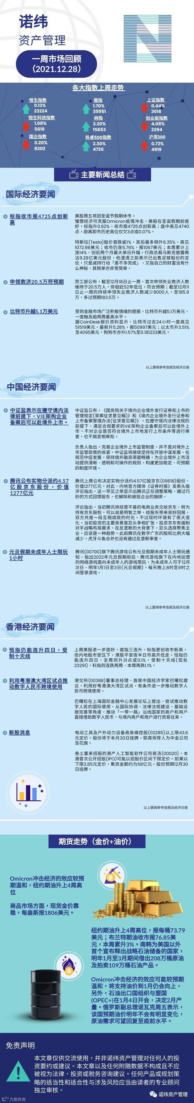 诺纬一周市场回顾(2021.12.28) 诺纬资产管理