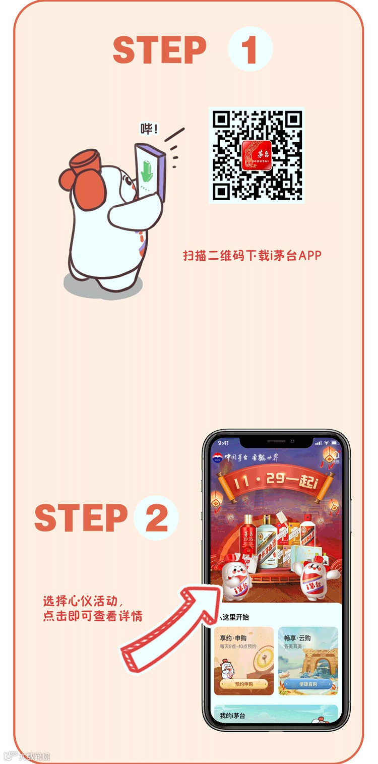 率先解锁完成“阅读达人”“i购达人”“努力达人”全部成就的前50000名用户,就能在12月27日9:00-12月29日18:00,参与“随心购”专场,专场投放贵州茅台酒(珍品)、贵州茅台酒(癸卯兔年)500ml、茅台1935酒×2瓶、100ml贵州茅台酒(i茅台)×2瓶等4款产品,供符合条件的亲们购买。