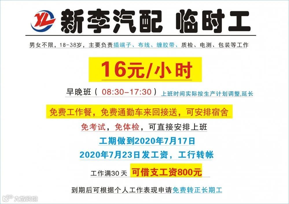 导读:因项目增加,订单增多,现招聘临时工和长期工若干名,电话:134-2764-2918 黄女士