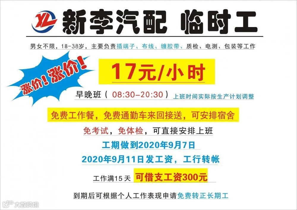 因项目增加,订单增多,现招聘临时工和长期工若干名,详细如下图: