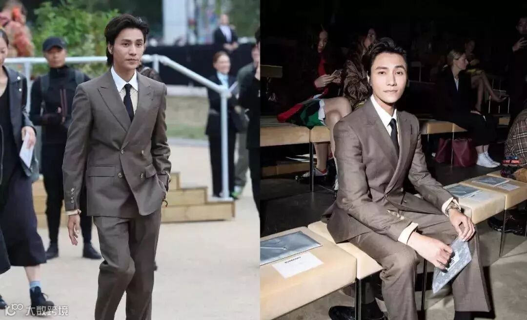 亮相秀场的陈坤,穿着一套颜色别致的深棕双排扣套装,非常英伦,还梳了背头,看着很是儒雅。