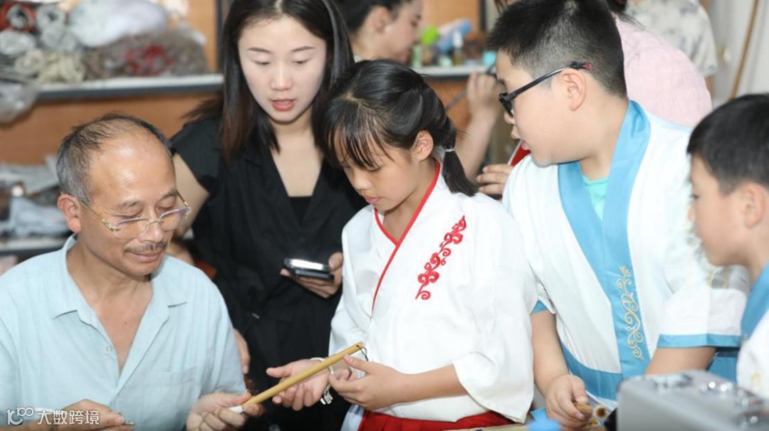 客户及其孩子们在博物馆内欣赏古今文人的墨宝、工匠精心制作的毛笔,聆听了关于毛笔悠久历史的精彩讲解。