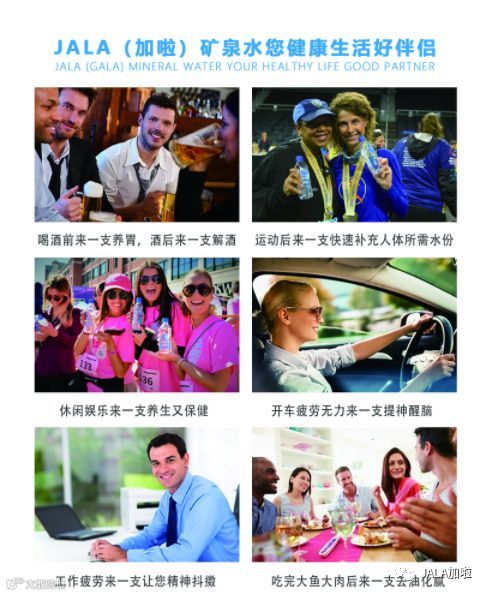 JALA(加啦)水源头坐落于马萨诸塞州的天鹅镇,从美国东北部的新英格兰地区原始山脉的资源泉口并在泉口旁直接装瓶。水源泉一口自流泉,最早为美国原居民印第安人发现, 是美国人居密度最低的地方之一。泉水经过丘陵和砂质土壤的过滤,流出泉口的温度为摄氏3°到4°。JALA(加啦)系列矿泉水经检测涌出的动态矿泉水中富含锶,镁、偏硅酸,锌等有益人体健康的微量元素,属低矿化度小分子团水(溶解性总固体为510mg/l)。其中锶含量为0.43mg/l,优于国标3倍,偏硅酸(PH值>7.0)呈天然弱碱性,是世界少有的珍稀富锶型水源。