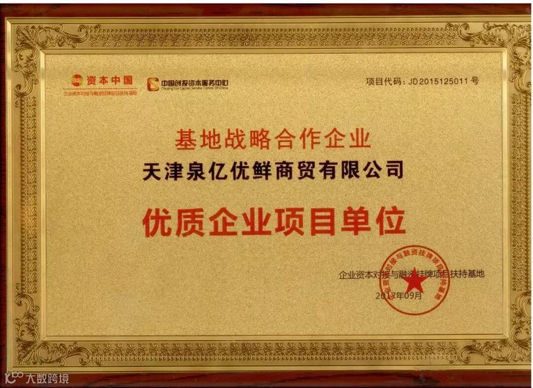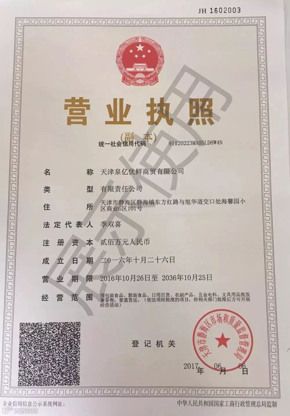 天津泉亿优鲜商贸有限公司成立于2016年10月26日,总部设立在美丽的天津静海。