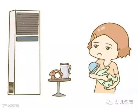 3.开空调的时候,注意让宝宝远离出风口,千万不能对着吹!大人也不行,这么强壮的十月菌都受不了空调的正面攻击,何况小宝宝呢?
