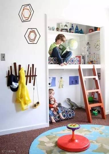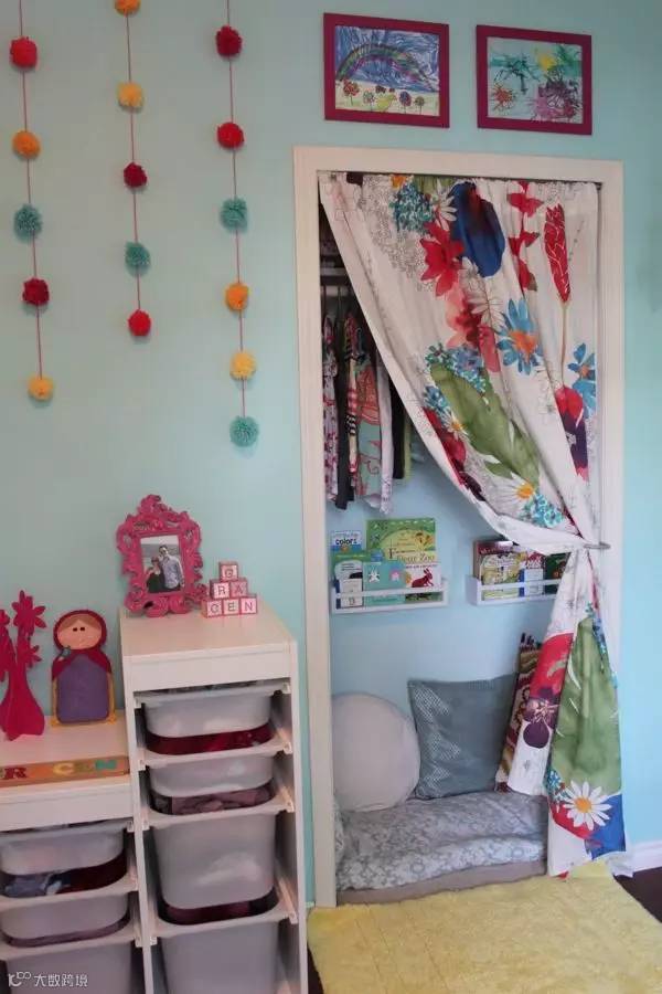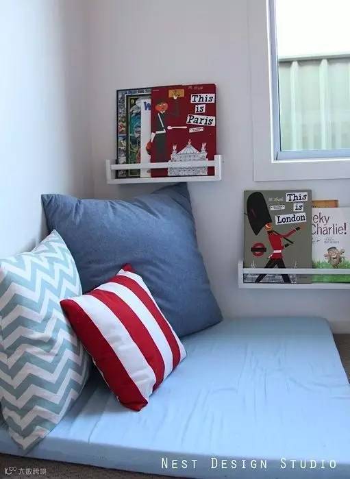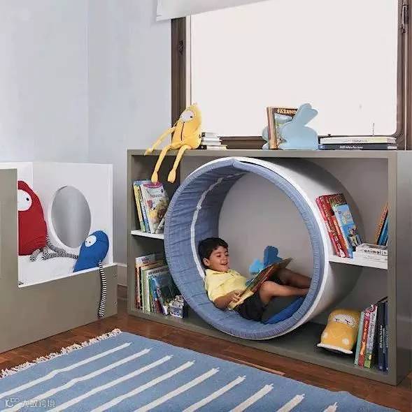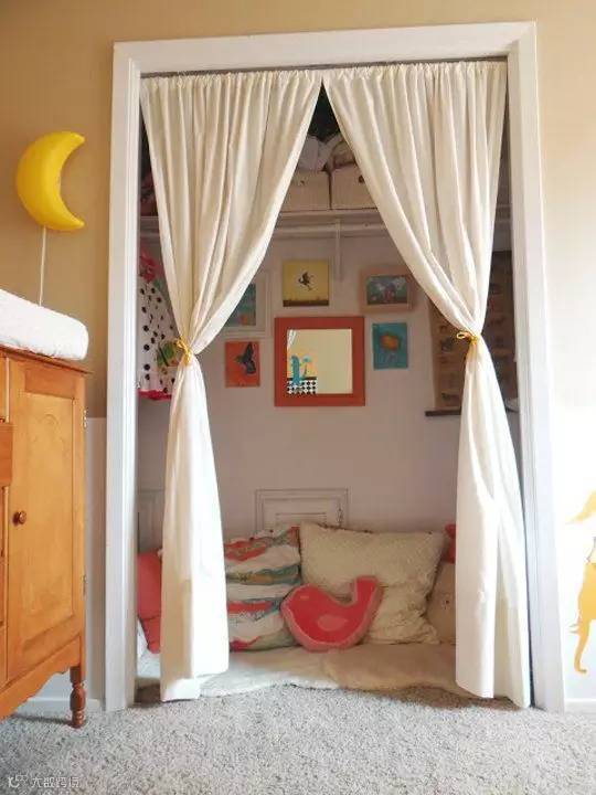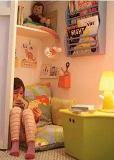 如果您家的空间足够大,那么不妨考虑隔出一个1米深的空间,其实也不过是一面墙、书架、相框、布帘子,还有地上铺着舒服的垫子,再加上一个抱枕,便能够给孩子一个安静地角落,独自的空间。