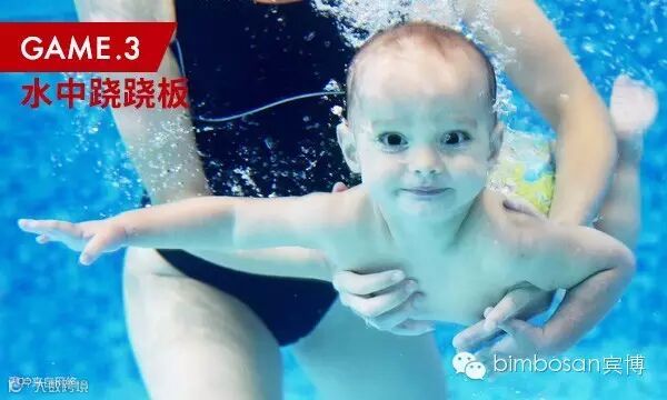 爸爸或妈妈与宝宝手牵手在齐腰的水中站立,两人按节拍分别一站一蹲,像在玩跷跷板,注意蹲下去时头要浸没在水中哦,带宝宝初步感受闷水的感觉,这可是初学游泳时必要的课程呢。