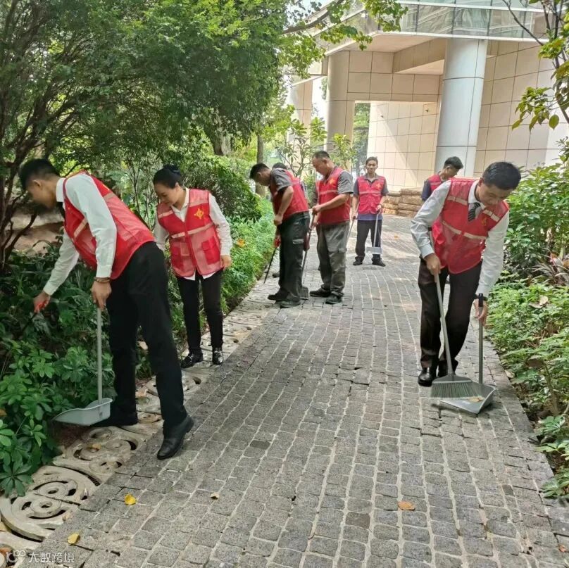 为推动党建引领物业小区发展更好地在一线落地,让红色物业惠及业主日常生活的方方面面,切实推动“我为群众办实事”活动更有效的开展,同时给广大业主提供一个干净舒适整洁的社区环境,中共广州侨鑫物业有限公司支部党员带领所有员工深入项目一线,持续性开展“美园行动”,对项目的天台、地面、车库、水景、各大通道等区域开展进行无死角深度清洁,焕新品质,提升园区“鑫颜值”。