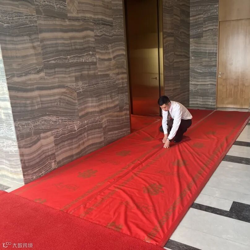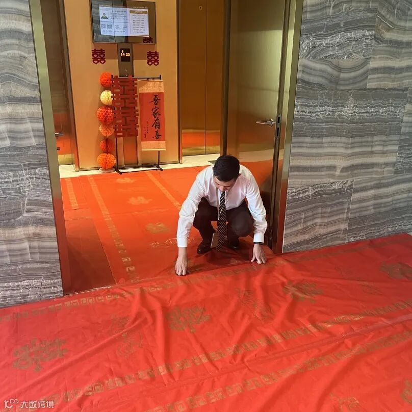 近日,小区业主举办婚礼,在婚礼前夕,客户服务中心安排专人特意为新人铺好一条华丽的红地毯,给新人增添一份庄重与喜庆,为业主送上衷心的祝福。