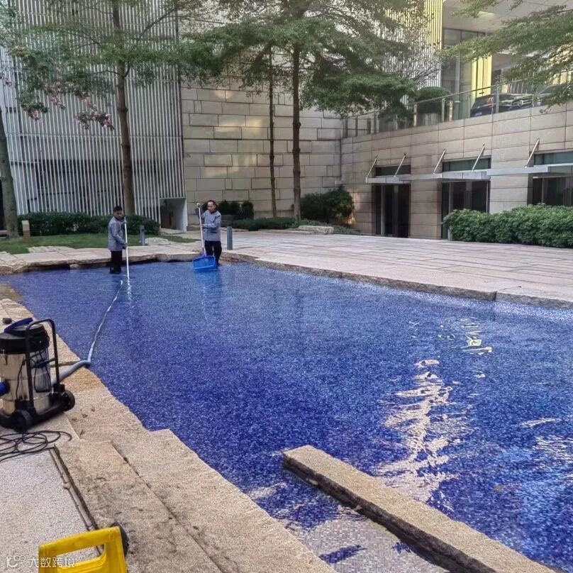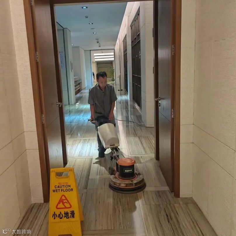 保洁团队每日对大堂玻璃、大堂格栅、园区景观水池、楼层通道、后楼梯、儿童房等区域进行深度清洁,夜间对各楼栋大堂及负层地面石材进行养护。