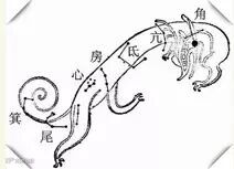 苍龙头部“角宿”上有两颗星:角宿一和角宿二,代表苍龙头上的两只犄角。“角宿” 之后的四颗星是“亢宿”,亢是龙的咽喉,在咽喉下面有四颗星排列成一个簸箕的形状是“氐宿”,代表着龙爪。龙爪后面的房宿、心宿、尾宿和箕宿分别代表了龙的心脏和尾巴。