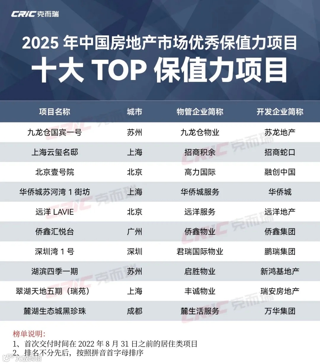 近日,由中国房地产业协会指导、克而瑞物管重磅发布『保值力』系列测评成果,涵盖2025年中国房地产保值力卓越物业企业、2025年中国房地产市场优秀保值力项目。侨鑫·汇悦台作为广州唯一上榜项目,荣获“2025年中国房地产市场优秀保值力项目—十大TOP保值力项目”称号。