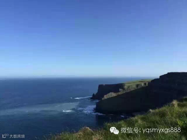 站在悬崖顶,天是最纯粹的蓝,蓝得不带有丁点的杂质。那一望无际的大海,蓝得像是晶莹剔透的宝石,饱和而富有光泽。导游跟我们介绍,因为爱尔兰的海是深海,阻隔了外来的环境污染,这里的海洋和空气,才变得这样的纯净。