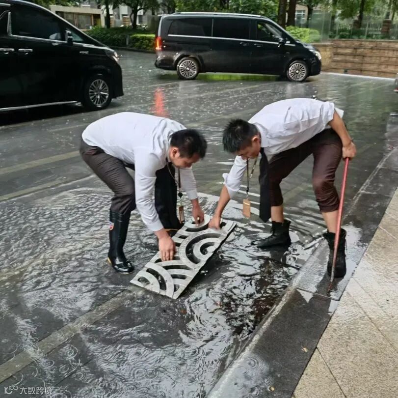 8月21日广州发布暴雨黄色预警、雷雨大风黄色预警,安防团队联动客服、工程、保洁等部门进行高效迅速的防汛抢险,确保园区排水畅通无阻,隐患及时排除,保障业主安全。