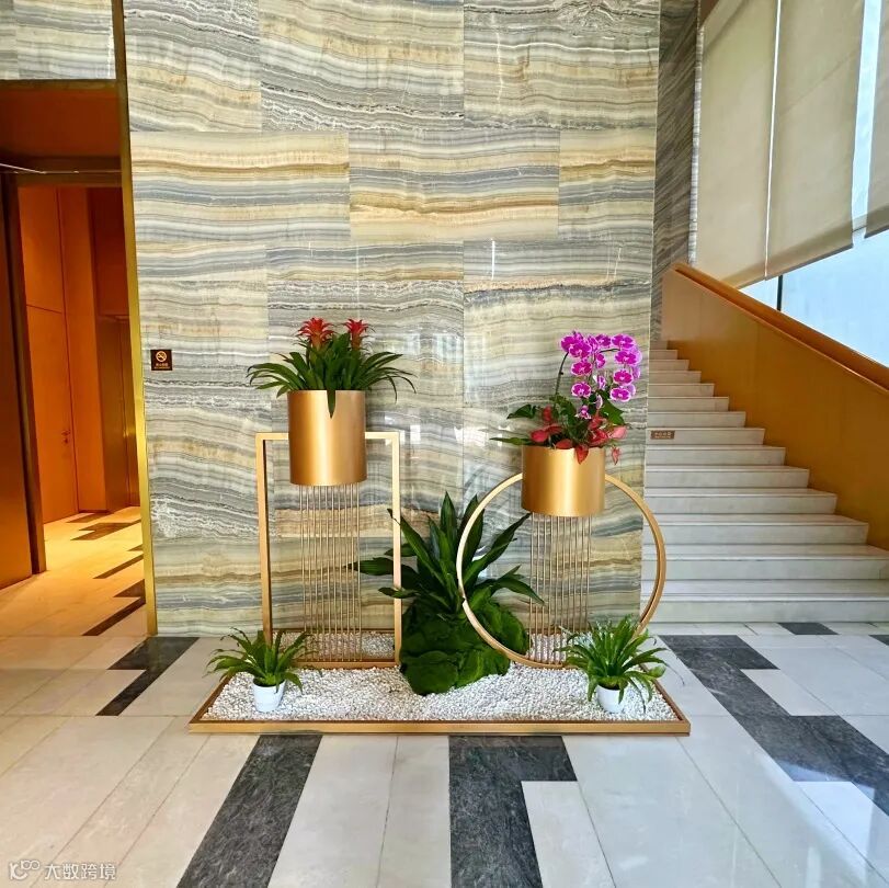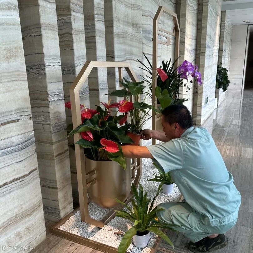 为营造绿色舒适的生活环境,绿化团队对各楼栋大堂定期更换花艺美陈,环境团队每日对其进行清洁养护。