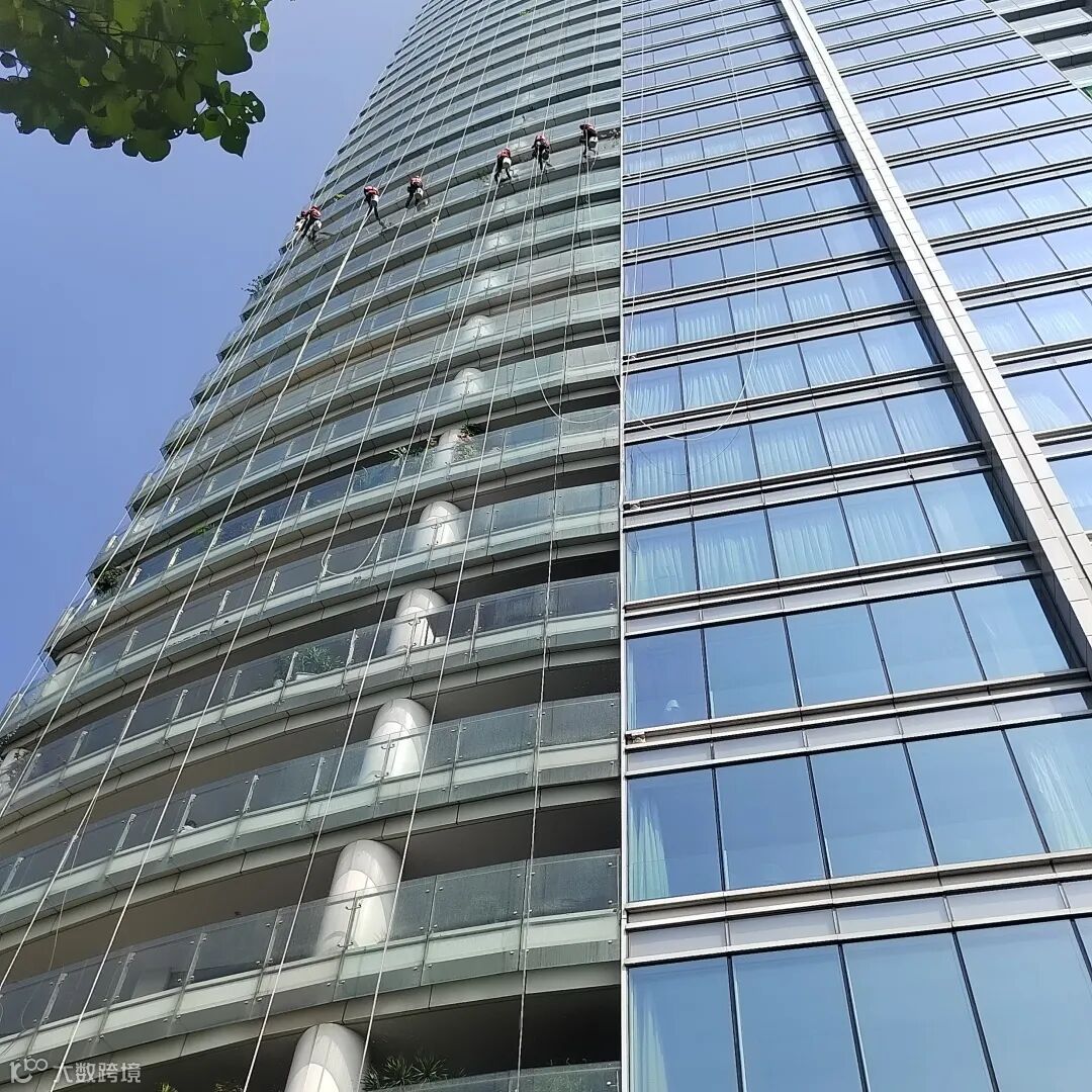 为保持汇悦台小区整洁的外观形象,给广大业主提供一个干净、整洁、舒适的居住环境,由专业的外墙清洗单位对小区进行外墙玻璃清洗。