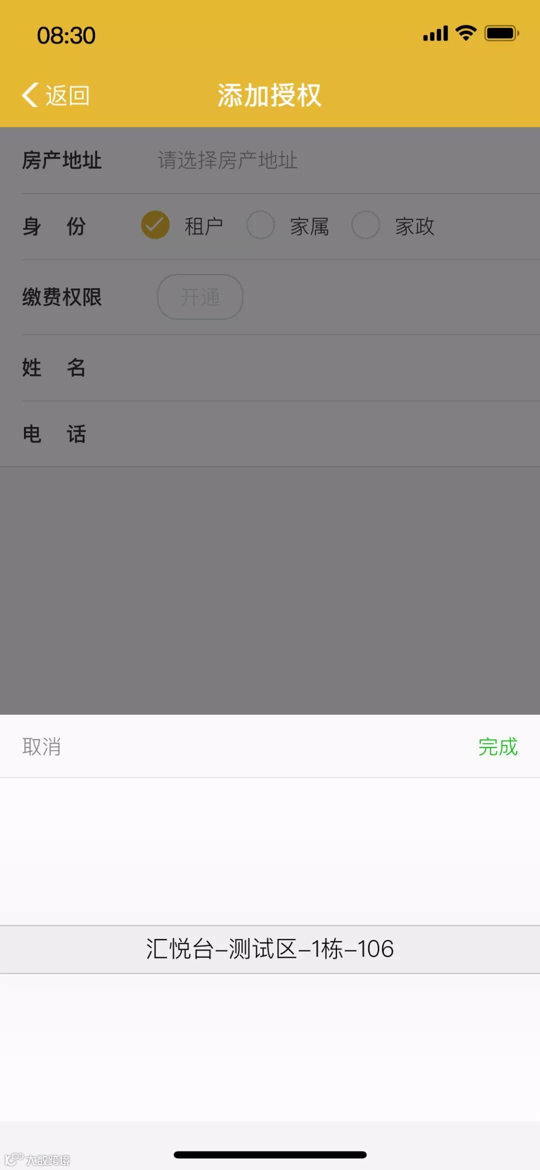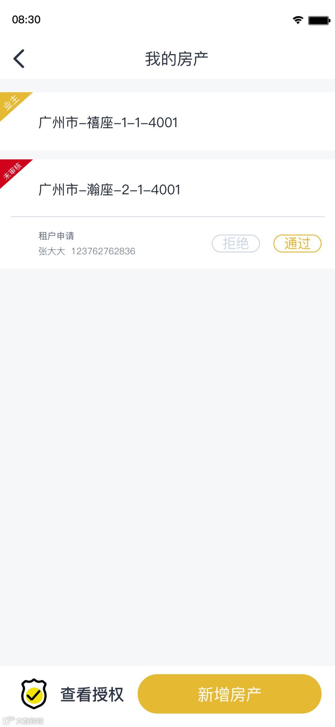 用于家属/租户/家政申请房屋角色,业主可添加/查看或审核我的房产信息。